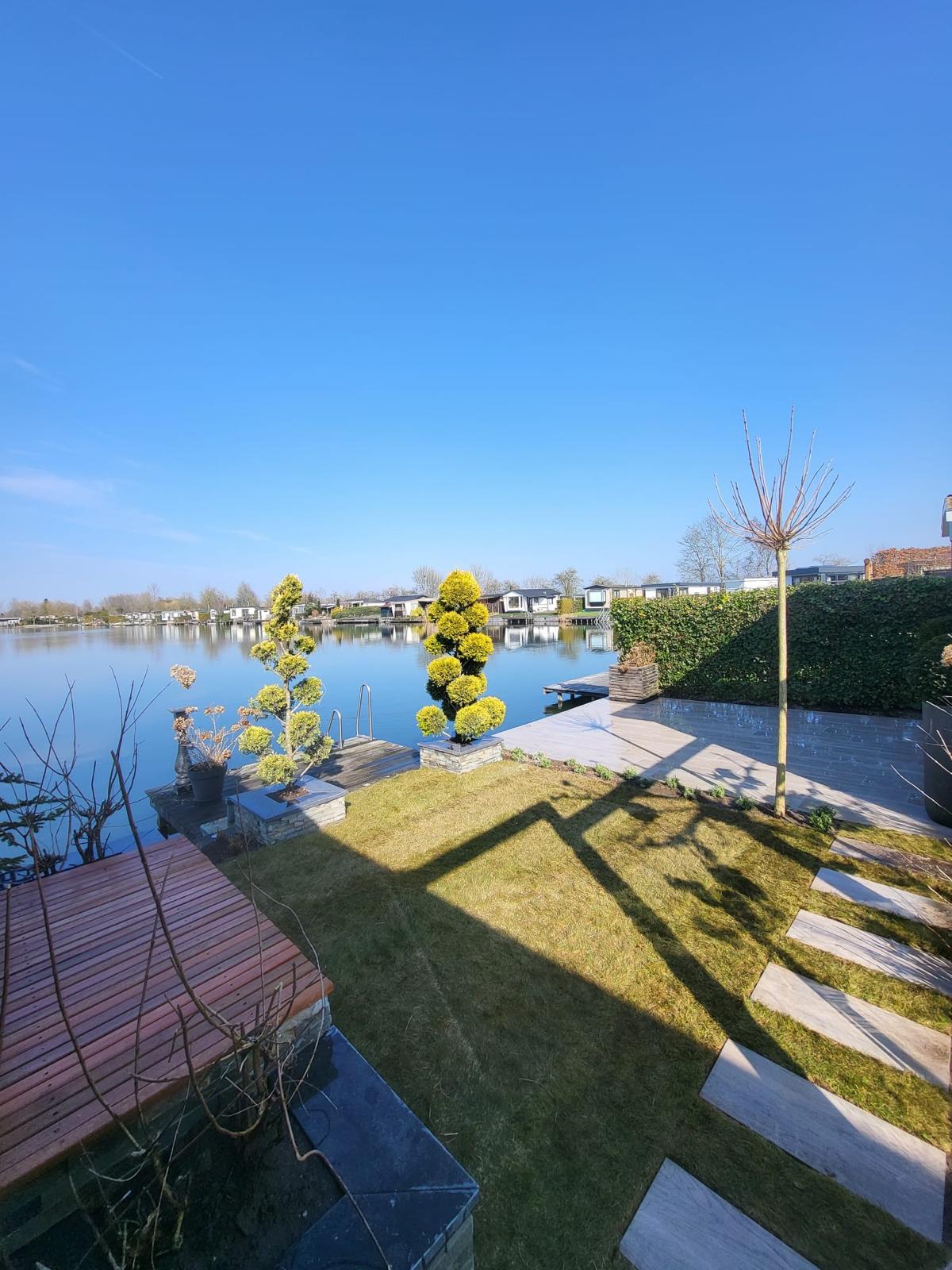 Complete renovatie van de tuin bij een vakantiewoning aan het water.