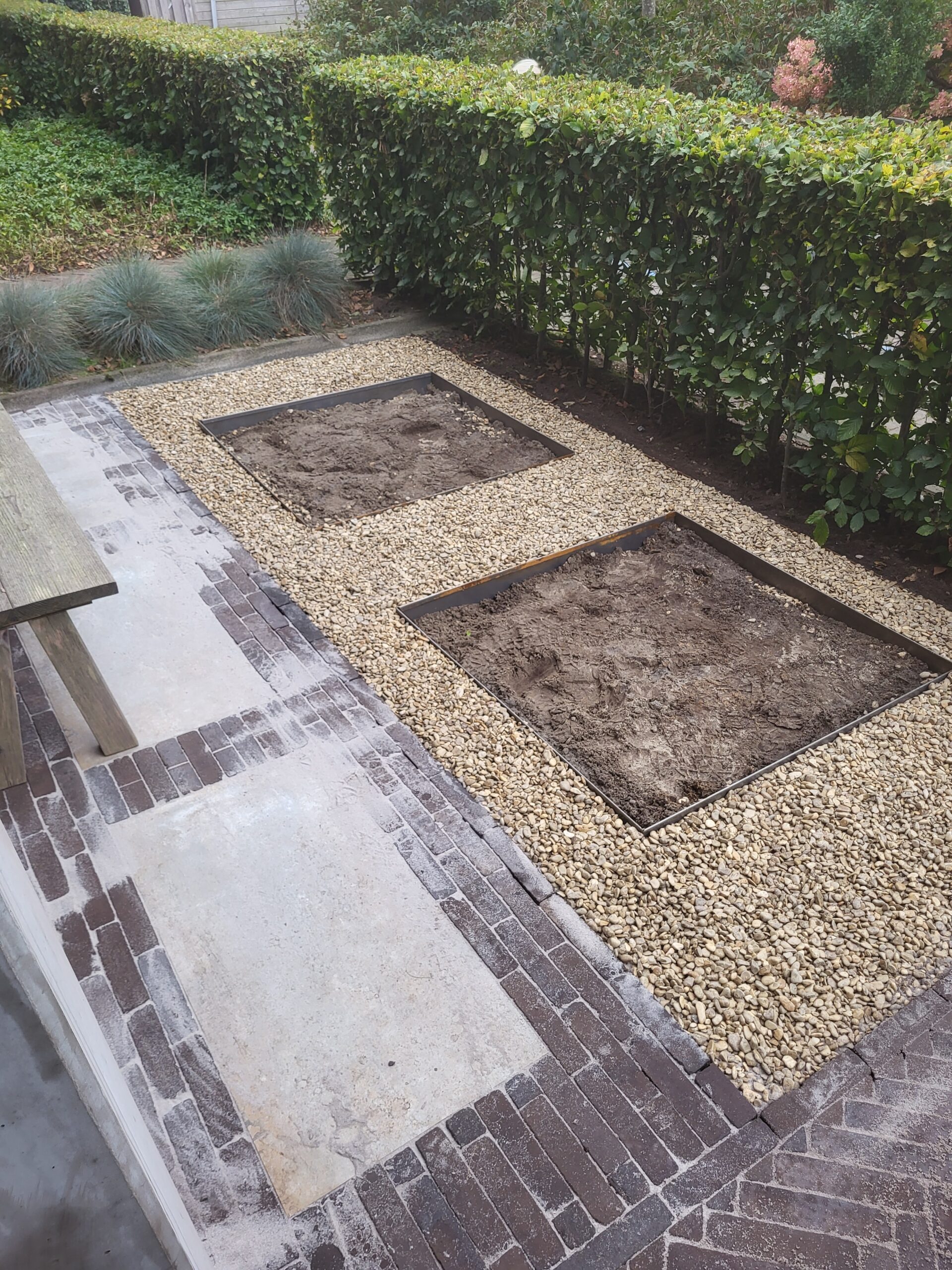 In deze tuin in Putten komt alles samen in een klein maar levendig ontwerp. Het looppad in visgraatpatroon leidt je sierlijk door de ruimte, terwijl Corten stalen bloembakken warme accenten toevoegen. Grote tegels onderbreken het geheel en geven het meer warmte.